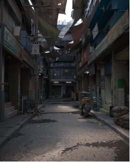 Fox Renderfarm: The lighting made this eastern narrow street vibe very realistic. The fabrics that block the sunlight look very interesting as the whole environment does its job. How did you make the lighting?